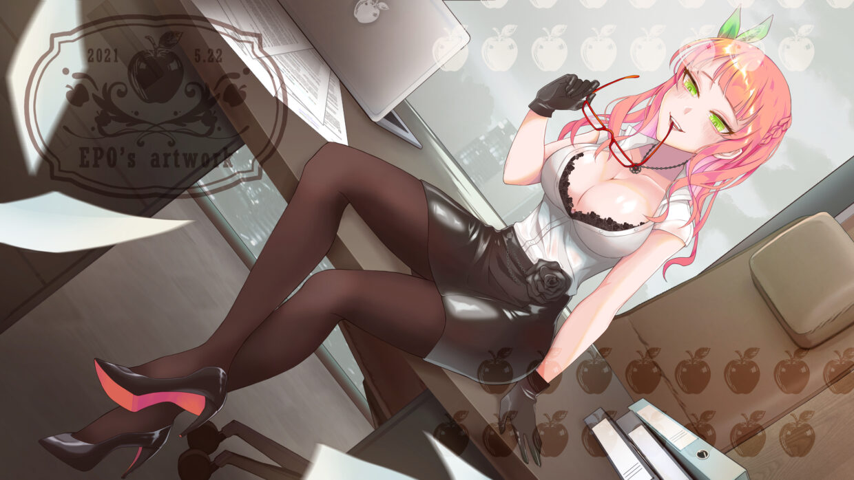 主題是「準備狩獵的OL辣媽」,像是黑色胸罩與黑絲襪都是我比較少畫的題材,為了要讓她看起來更火辣,努力了一把呢!