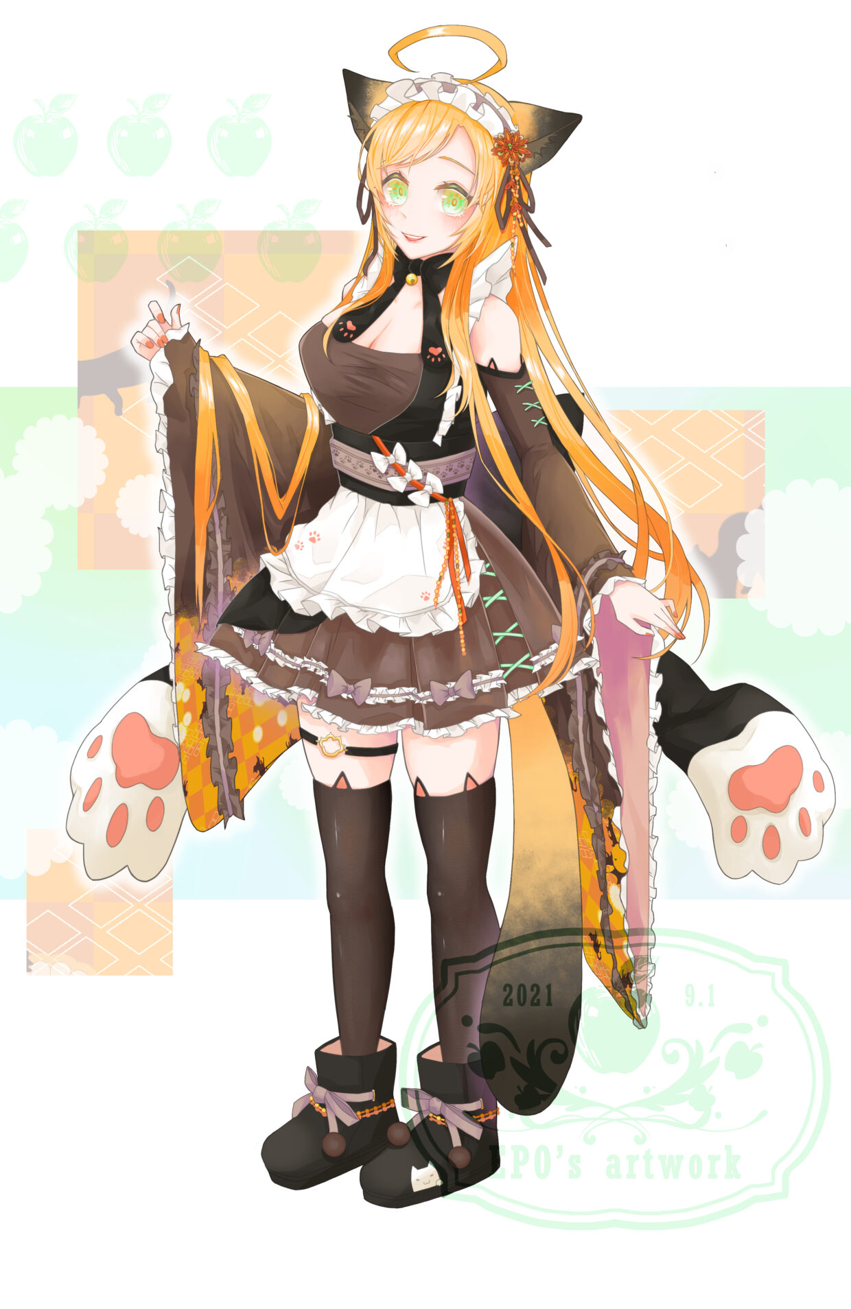 這次是可愛的貓耳女僕,為她設計了日式的貓咪花布。