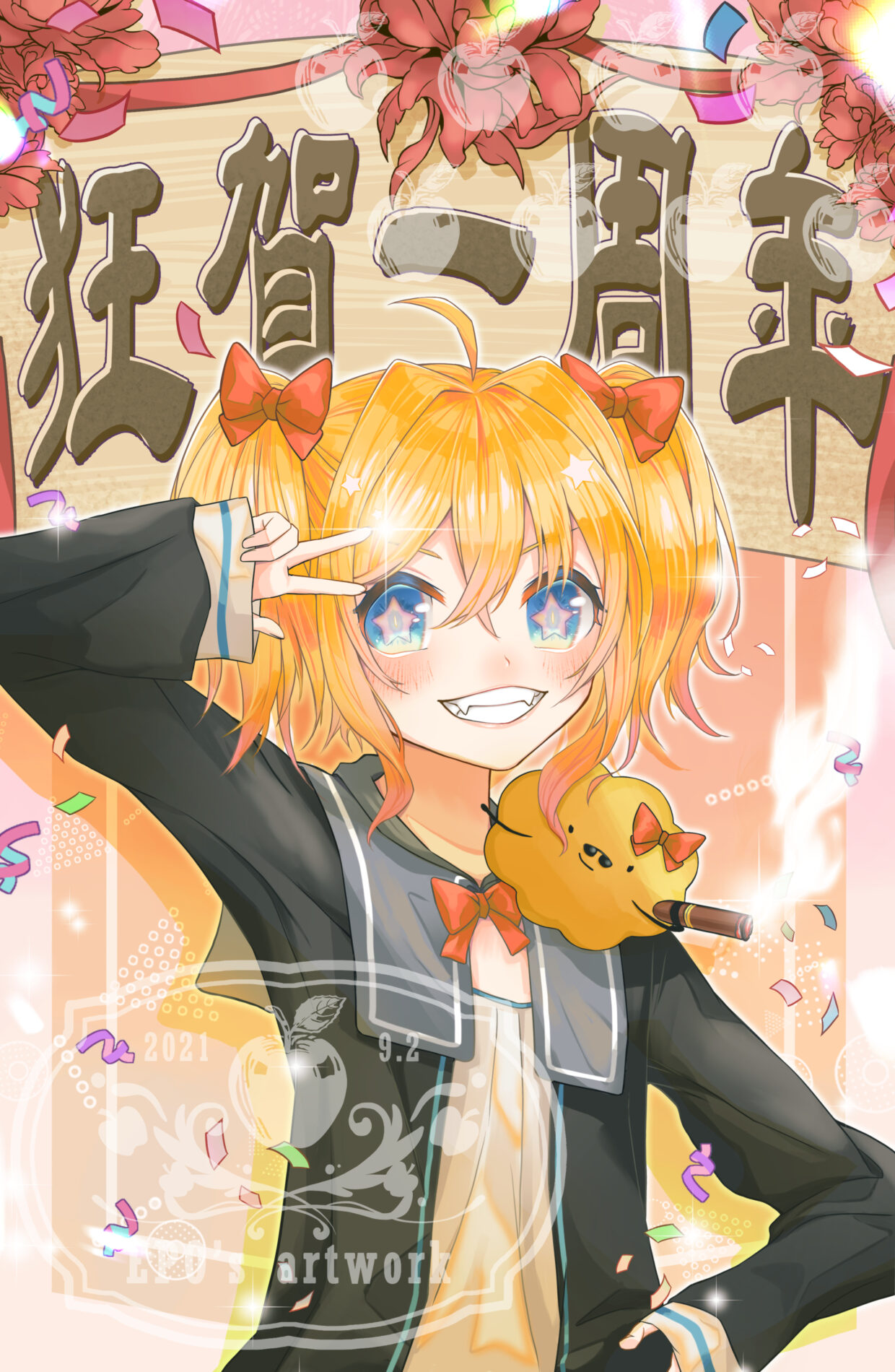 是周年賀圖的委託!希望製造熱鬧又俗擱有力的感覺,所以加了匾額跟彩帶,希望收到的人會開心!