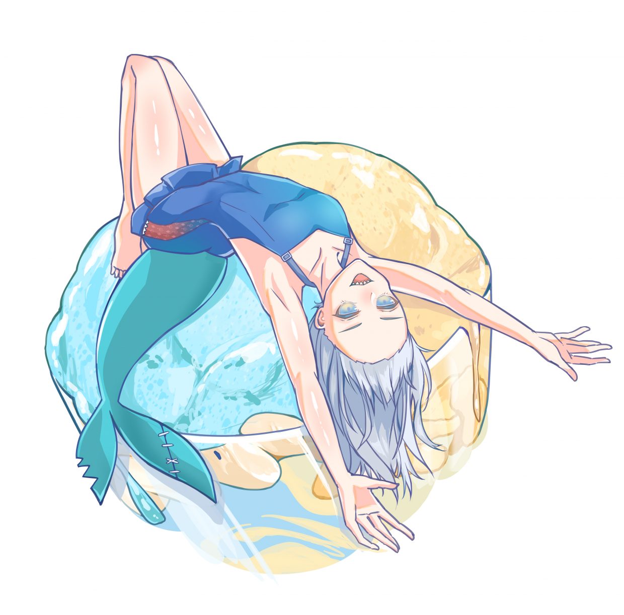 The blue of the soda is super healing, leaving Gura on top of the ice cream.