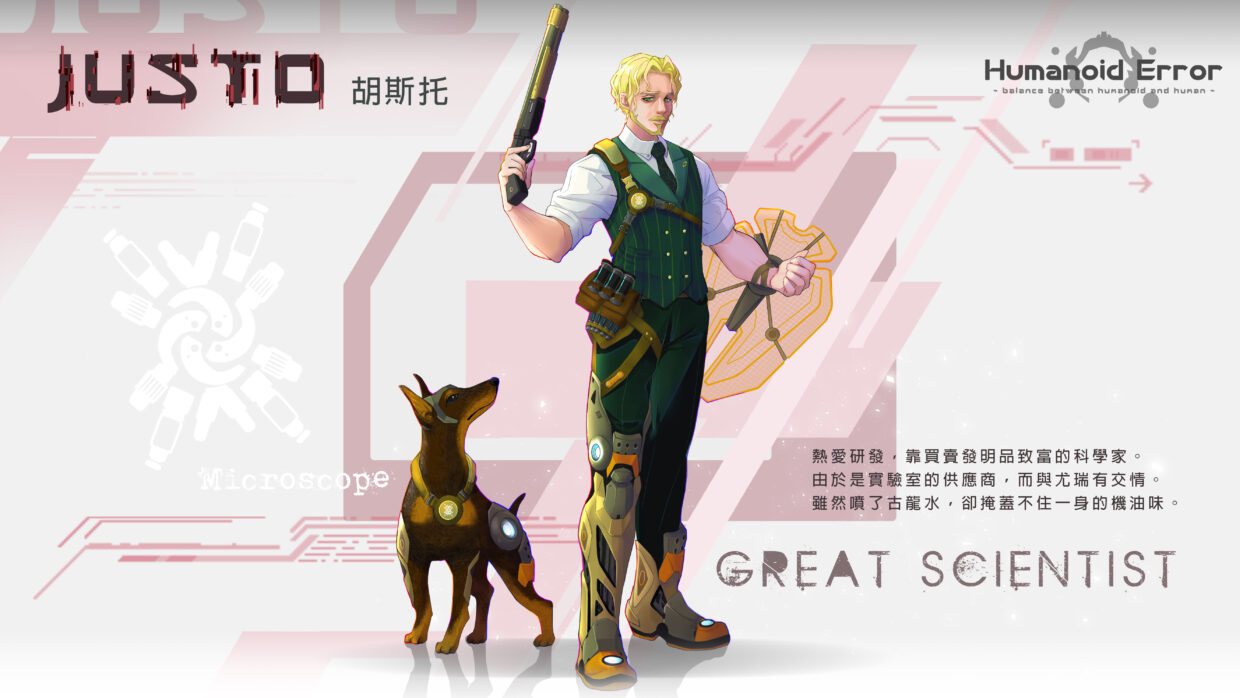 很難得的大叔角色。設定上是科學家。個性非常游刃有餘。私心給他搭配了一隻精明衷心的杜賓犬。尤瑞的諸多裝備由他提供,跟昔雅也是老交情。這下列剩下最後一隻我很喜歡的小男孩角色。會趕快把他發完。